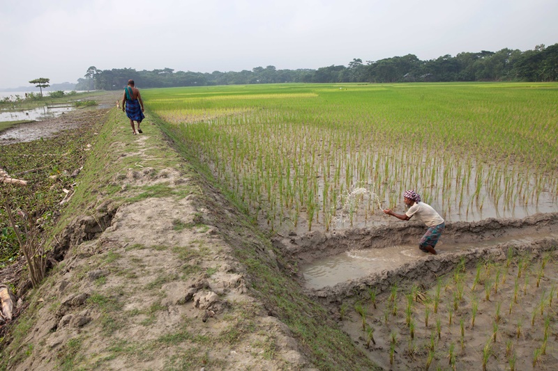 Der Umgang mit der Klimakrise nimmt dabei eine Schlüsselrolle ein. Beispiel Bangladesch, wo der ansteigende Meeresspiegel die Böden und Grundwasser versalzt und so das Überleben von Millionen Menschen bedroht. Die Partnerorganisationen von „Brot für die Welt“ schenken dort Hoffnung. Wie der Familie von Aklima Begum: Mitarbeitende der Organisation CCDB gaben ihr salzresistentes Saatgut, installierten vor ihrem Haus einen Regenwassertank und zeigten ihr, wie sie Gemüse in Hochbeeten ziehen kann.