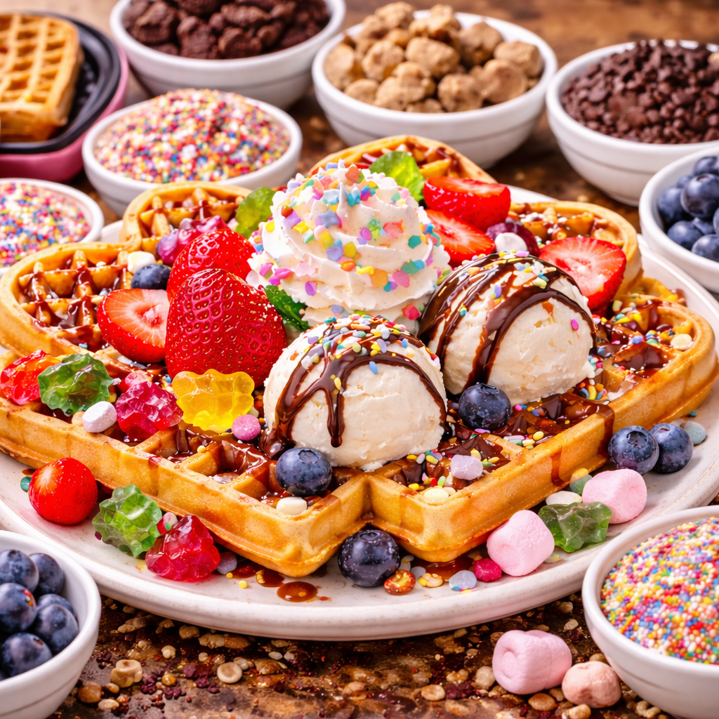 Und jetzt seid ihr gefragt: Kreiert zum Waffelfest euer liebstes Topping! Für ein kunterbuntes Buffet freuen wir uns über alles, was zu einer Waffel schmeckt! Das können Soßen aller Art sein, Streusel, Obstmischungen, süße oder herzhafte Varianten, in allen erdenklichen Farben und Kombinationen.Bringt sie am 31.5. einfach mit, damit jeder am vielfältigen Topping-Buffet seinen persönlichen Waffelteller gestalten kann.